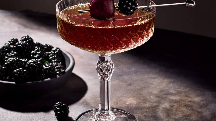 Garnish with a brandied cherry and a blackberry. Cheers to elegance!